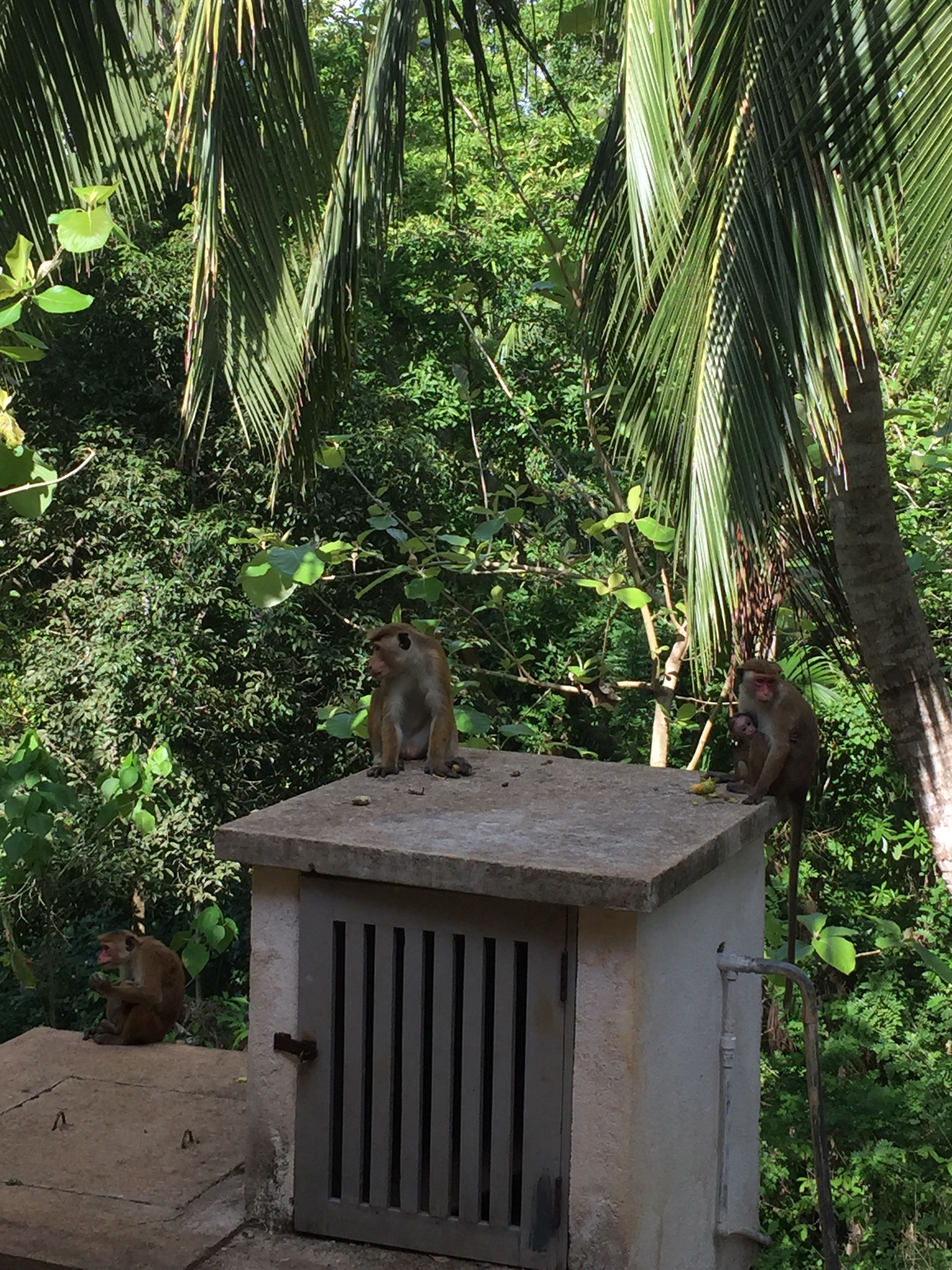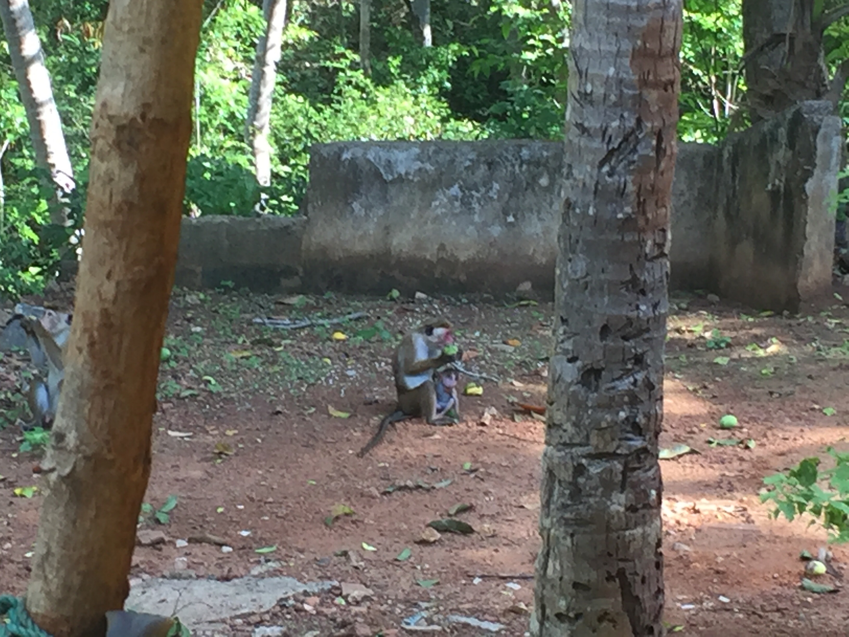 This week the area outside my bedroom window has been host to a monkey creche. A whole troop has made camp including several nursing females with babies of varying sizes clinging to their midrifts. Their chatter is the first thing I hear when I wake up and I am now used to them staring at me as I get dressed in the morning, willing me (as yet unsuccessfully) to throw them some fruit.
